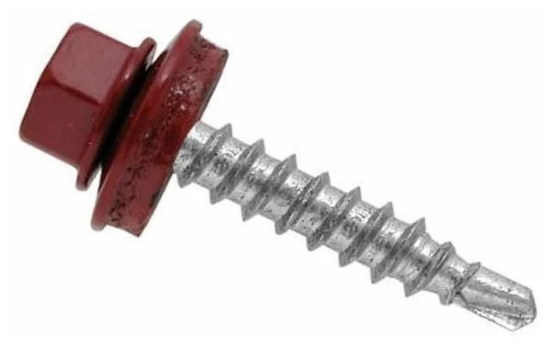 Саморез выполнен из стали С1022. Головка с внешним шестигранником и EPDM-уплотнитель окрашены полиэфирной краской в коричнево-красный цвет.