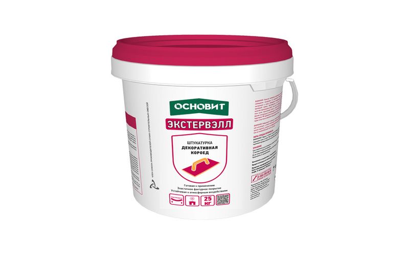 Готовая к применению штукатурка декоративная Основит Экстервэлл фактура “короед” предназначена для создания тонкослойного декоративно-защитного покрытия при отделке различных поверхностей, в т.ч. при устройстве системы фасадной теплоизоляции Основит.
